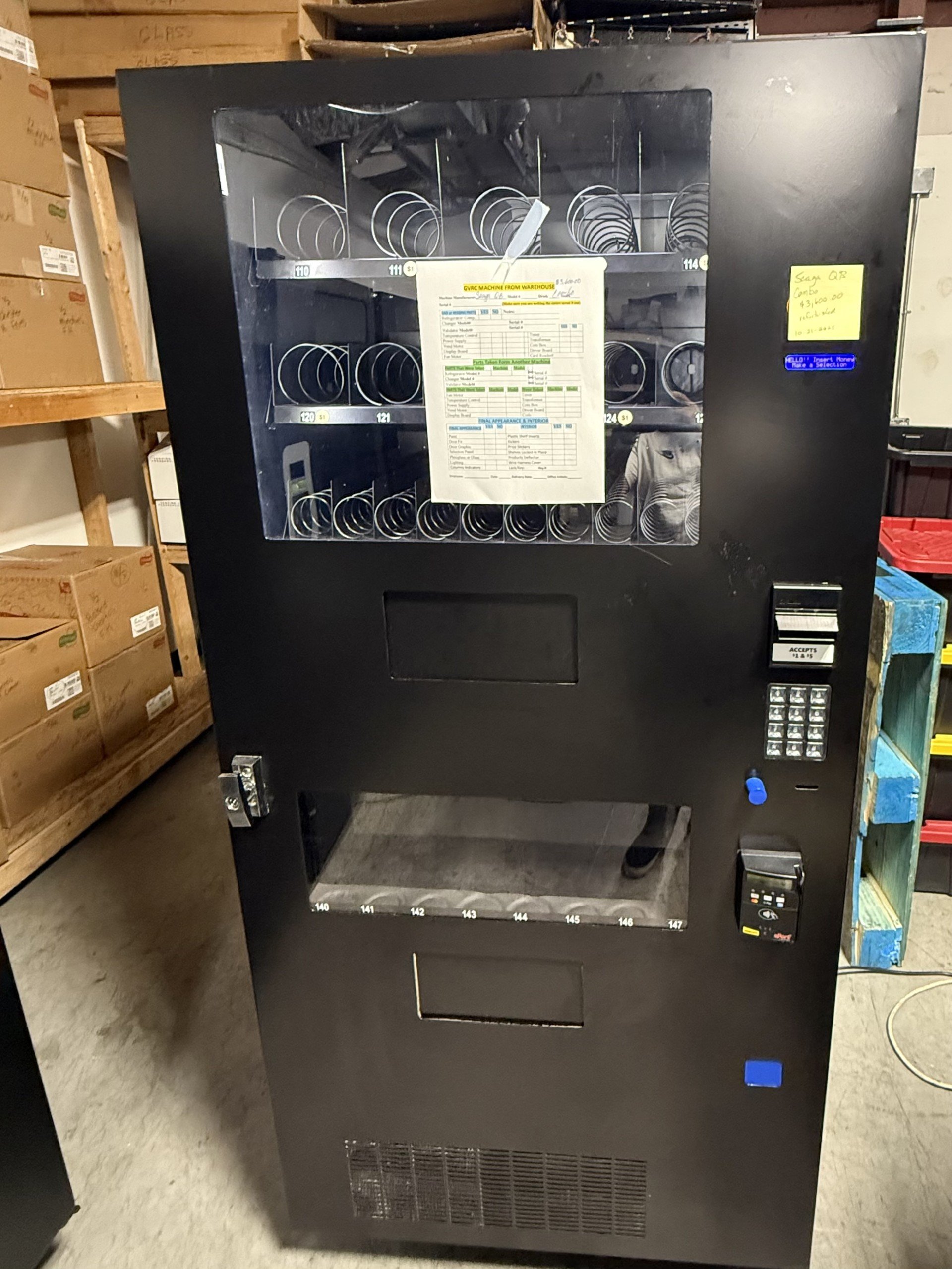 Delivery is available in the metro area of Atlanta, Georgia as well as shipping via LTL. 6 month warranty on machine & parts Will vend Monster Energy Drink, 12oz cans, 16oz, 20oz bottles and snacks - 21 snack selections / 8 drink selections - Snack capacity: 210 - Drink Capacity: 106